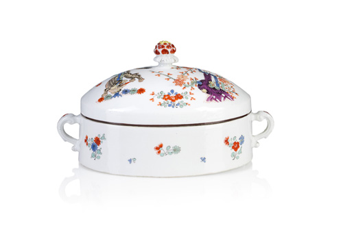 KatNr 743 Seltene Butterdose mit "Gelbem Löwen" aus der Königlichen Hofküche. Meissen. Um 1740/1750.