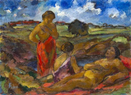 KatNr 56 Erich Fraaß "Drei Frauen am See". Um 1919.