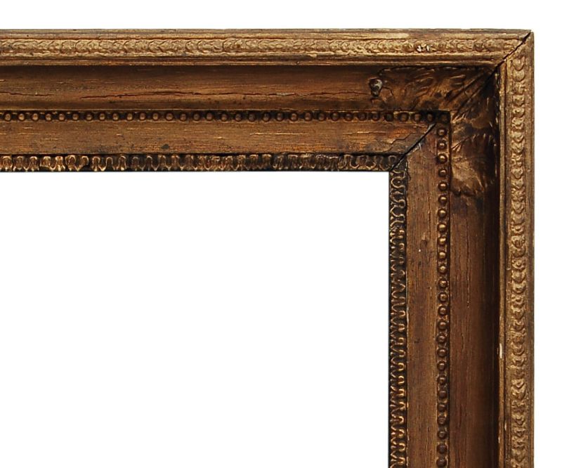 Doubliert. Malschicht mit feinem Krakelee, punktuell minimale Farbausplatzungen und drei leicht sichtbaren Retuschen. Rahmen mit Altersspuren und kleineren Abplatzungen.