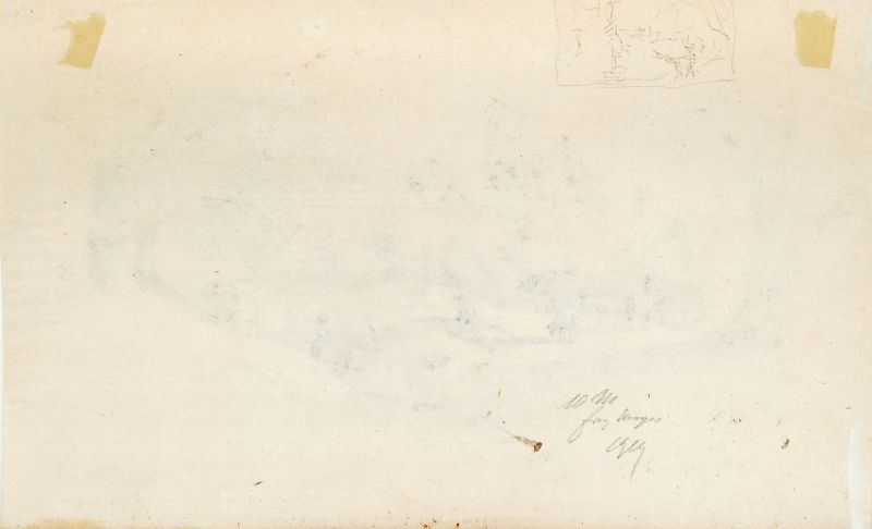 Bleistiftzeichnung, partiell tuschegehöht, auf Bütten mit Wasserzeichen (Nadelbaum mit Wurzelknospe und Lilienabschluss). U.re. signiert "Erhard" und u.Mi. betitelt. Verso eine kleine Bleistiftskizze einer Flusslandschaft und von fremder Hand bezeichnet.