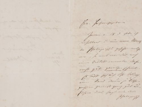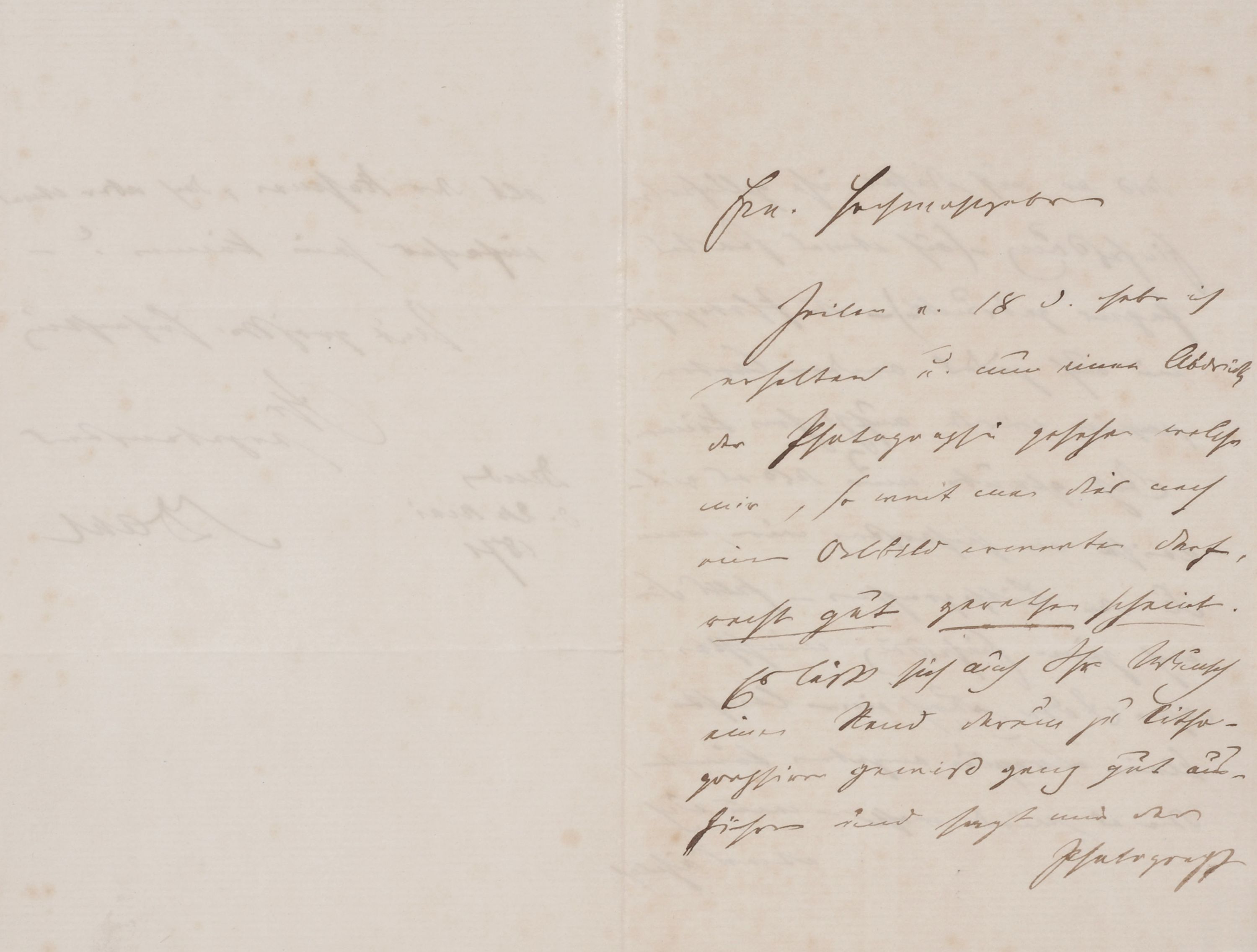 Der französische Brief mit Siegel ist an einen Baron gerichtet und beinhaltet eine Rückfrage zu Entwürfen zur Leipziger Eisenbahn. "À Monsieur le Baron de [...]