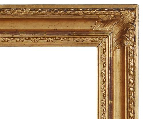 Öl auf Holz. Unsigniert. In gold- und schellacküberzogener Hohlkehlenleiste mit Akanthuslaub in den Ecken und hinterkehltem Bandprofil gerahmt.