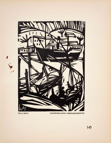 223 Willy Menz "Dampfer" / "Spanischer Hafen" / "Elbe" / "Kanal" / "Trauerfeier" / "Christus mit Jüngern". 1923.