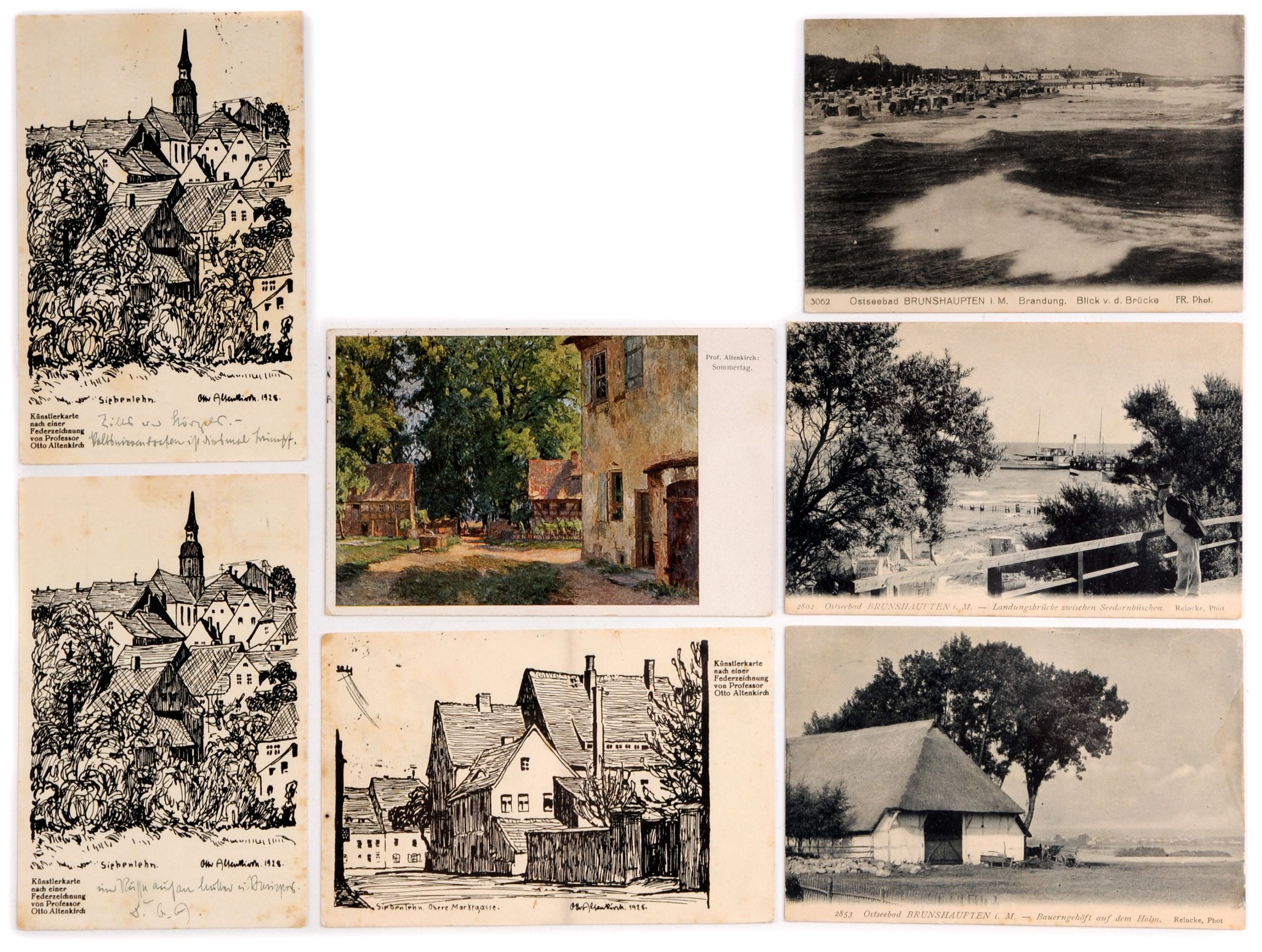 Mit vier Postkarten von Otto Altenkirch, adressiert an seine Ehefrau, 1930–32, sowie zwölf Postkarten u.a. von Margarethe Zimmermann, M Nowakowski, Hans Böhme, Gertrud und Inge Liskert und Friedel Hanke. Darunter eine Einladung zum Bauernball 12. Februar 1927 mit zehn Signaturen, u.a. Hedwig Lindner, O. Lindner, Paul Zimmermann, Bodo Freiberg, W. Hennig, Else Langer?