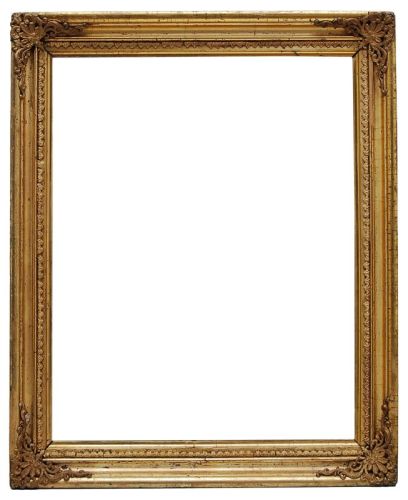 Öl auf Leinwand. Unsigniert. In gold- und schellacküberzogener Hohlkehlenleiste mit aufgesetztem Wellenstab und Eckkartuschen aus Guß.