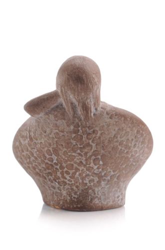 Ton, roter Scherben, mattbraun, in den Tiefen hell glasiert. Unterseits mit dem geprägten Künstlermonogramm und mit dem Etikett des Staatlichen Kunsthandels der DDR sowie mit einer Bezifferung auf einem Klebeetikett.