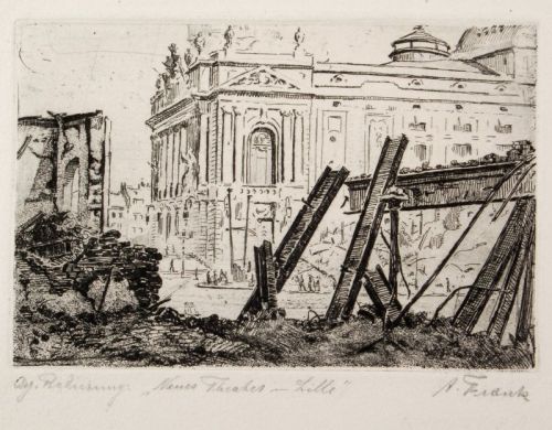 232   Alfred Frank "Neues Theater in Lille" / "Rue de Paris" / "Deutsches Theater u. H. Bahnhof". Um 1916.
