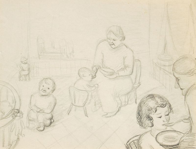 Die Blätter entstammen einem Skizzenbuch der Künstlerin und illustrieren das Pariser Straßenleben mit seinen Clochards, Booten auf der Seine und Cafészenen.