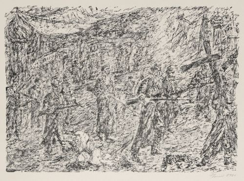 Zwei Lithografien von Fritz Cremer (aus der Mappe zu Alexander Bloks Poem "Die Zwölf", hrsg. v. Lothar Lang u. Hans Marquardt. Leipzig 1981.) Beide in Blei signiert u. datiert u.re.