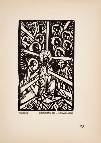 Holzschnitte. Teilweise im Stock ligiert monogrammiert "WM". Typografisch bezeichnet u.li. "Willy Menz", u.re. "Originalholzstock" sowie betitelt. Je mit Seitenzahl. Aus "Die Rote Erde", Zweite Folge / Zweites Buch, Hamburg, 1923.