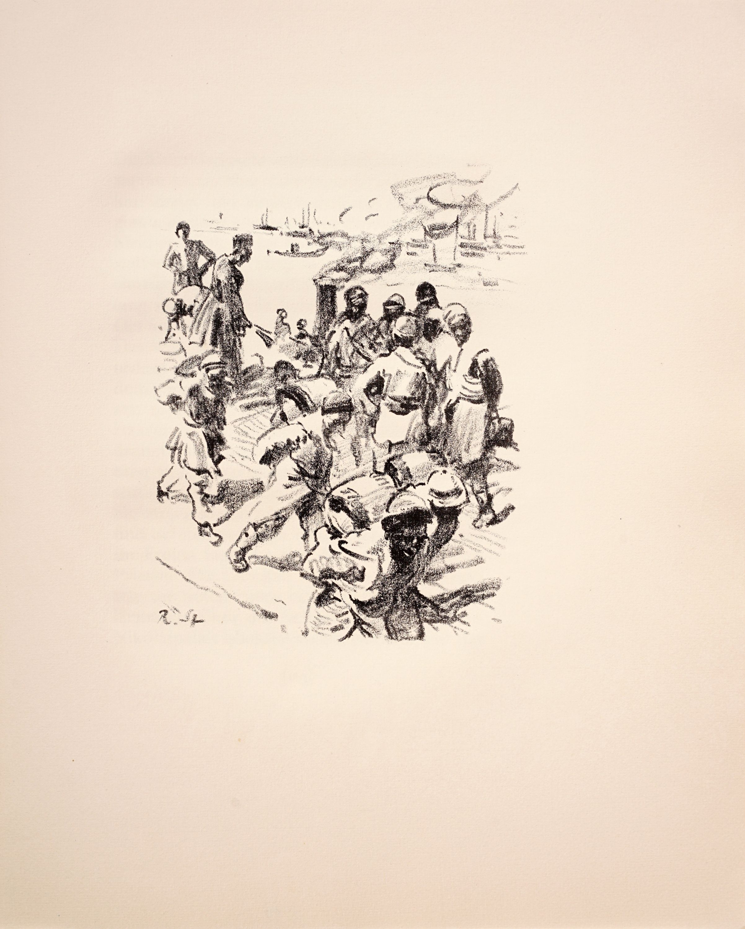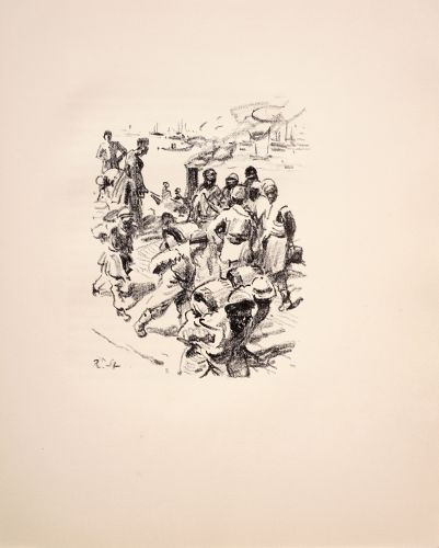 Lithografien auf handgeschöpftem, chamoisfarbenen "Zanders"-Bütten. Folge mit 17 Arbeiten. Jeweils im Stein monogrammiert "R. St.". Veröffentlicht als Beilage zu Oskar Bie, Musik auf der Wolga 1914. Drucke der Wahlverwandten. Vierter Druck. Verlag von Meissner & Buch, Leipzig 1920. Im Impressum in Blei nummeriert "115" von 200 Exemplaren der Normalsausgabe. Im originalen Pappeinband in Fadenbindung, auf dem Titel mit Goldprägung.