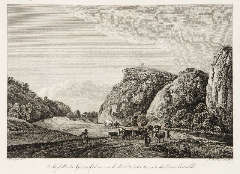102 J.A. Darnstedt "Ansicht der Granitfelsen nach der Brück zu, von der Buschmühle". Um 1830.