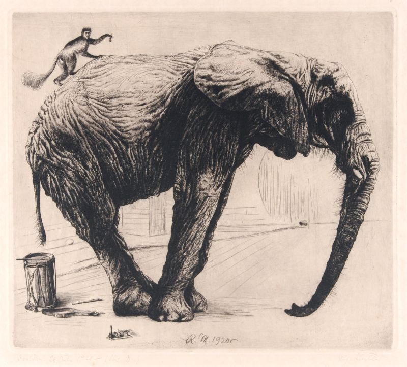 Radierung in Schwarzbraun mit Plattenton auf Bütten. In der Platte u.Mi. monogrammiert "R.M." und datiert. Unterhalb der Darstellung in Blei re. signiert "Rich. Müller", li. ausführlich bezeichnet und datiert "Dresden 28. Juli 1920 (Uhr 3)". Im Passepartout hinter Glas in profilierter Holzleiste gerahmt.