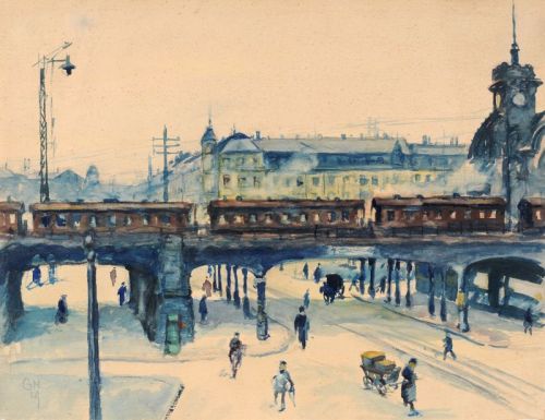 Aquarell auf leichtem, gelblichen Karton. In Blei u.li. monogrammiert "GN" und datiert. Verso mit Bleistiftannotationen von fremder Hand. Hinter Glas in schwarzer Holzleiste gerahmt.