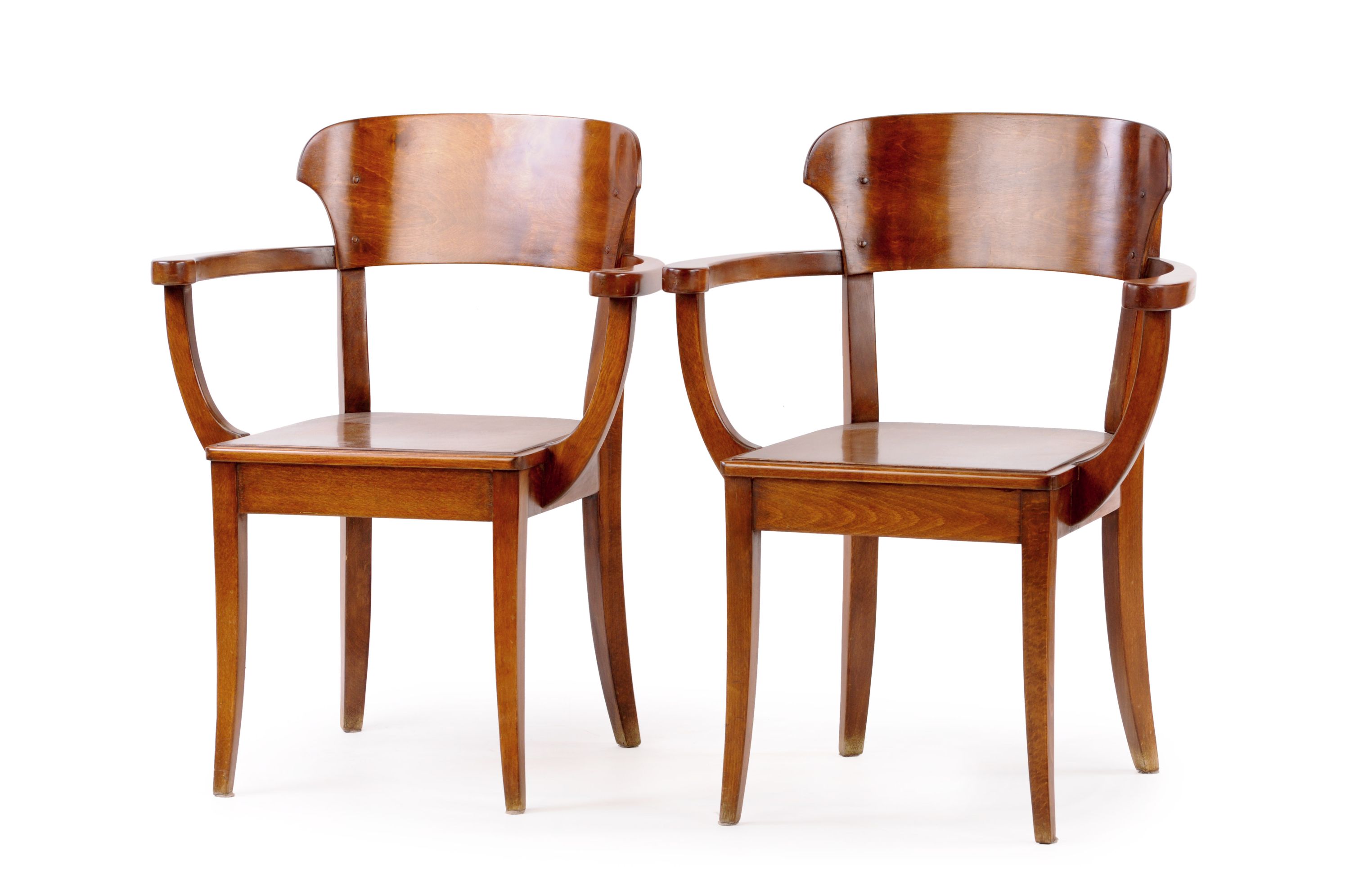 1084 Paar Armlehnstühle (De-We-Stuhl) 420.2. Richard Riemerschmid für Deutsche Werkstätten Hellerau. Nach 1918/1919.