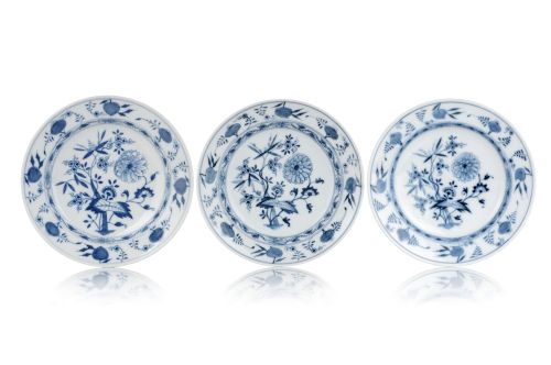 1097   Drei Teller "Zwiebelmuster". Meissen. Um 1775-Mitte 19. Jh.