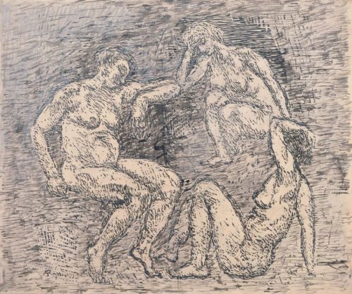 1115   Wilhelm Rudolph, Drei sitzende weibliche Akte. Ohne Jahr.