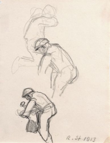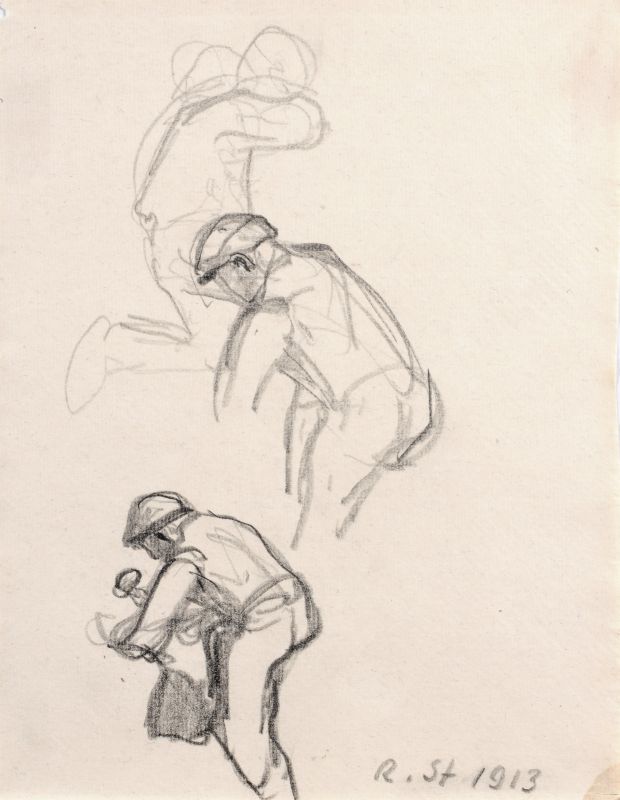 Grafitzeichnung auf feinem Maschinenbütten. U.re. monogrammiert "R. St" und datiert.