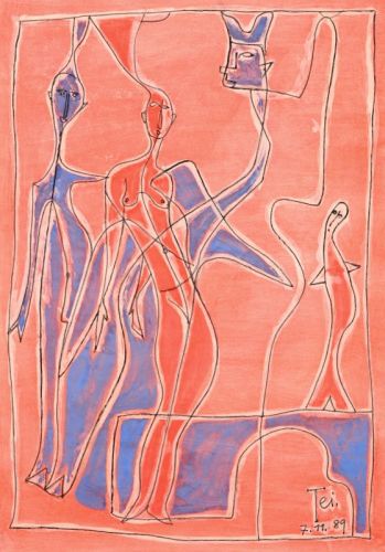 Aquarelle mit Tuschezeichnung (fixiert) auf Papier. In Tusche jeweils u.re. signiert "Tei." und ausführlich datiert "7.11.89" bzw. "12.1.90". Jeweils verso in Blei wohl von Künstlerhand betitelt.