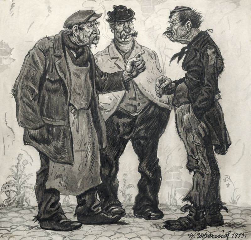 1193   Wilhelm Ueberrueck, Drei Männer im Gespräch. 1915.