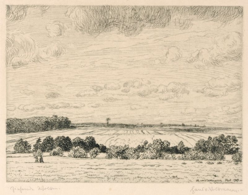 Radierung auf Bütten. In der Platte signiert "HR von Volkmann", betitelt und datiert. Unterhalb der Darstellung re. in Blei signiert "Hans v. Volkmann" sowie im Sütterlin bezeichnet "Willingshausen" li. An den Ecken auf Passepartout montiert. Verso mit Stempel versehen.
