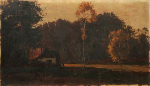 129   Unbekannter Künstler, Hütte am Waldrand. Wohl um 1920.