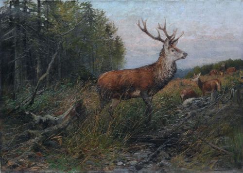 013 Albert Ernst Mühlig "Sichernder Rothirsch". 2. H. 19. Jh.
