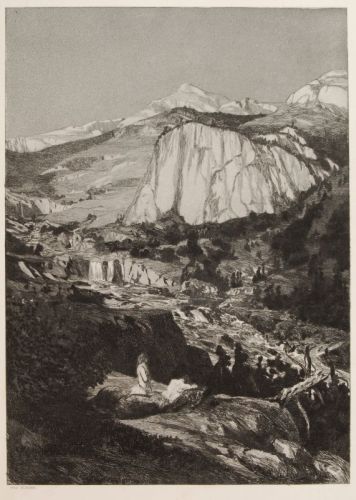 Aquatintaradierung auf China, auf Kupferdruckpapier aufgewalzt. In der Platte typographisch signiert "Max Klinger" u.re. und nummeriert "IV" u.re. Auf dem Untersatzpapier in Blei von fremder Hand ausführlich bezeichnet. Blatt 5 aus dem Zyklus Intermezzi, Opus IV.