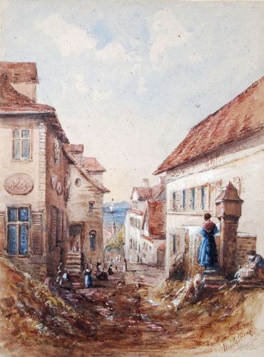 140 Monogrammist E.C.A."Road to the Schloß (The mountain street) Heidelberg". 1852.