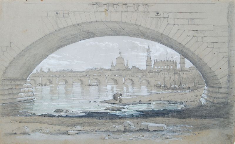 152 Woldemar Hottenroth, Blick auf Dresden von der Marienbrücke aus. Nach 1854.