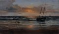 Öl auf Leinwand. Signiert "K. SCHRADER" und ortsbezeichnet "HAMBURG" u.li. In einer breiten, profilierten Holzleiste mit goldfarbener Blattmetallauflage und lasierender, brauner Patinierung gerahmt.