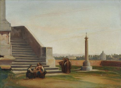 016 Heinrich Carl Reinhold (zugeschr.), Blick auf Santa Maria di Loreto in Rom. 1824.