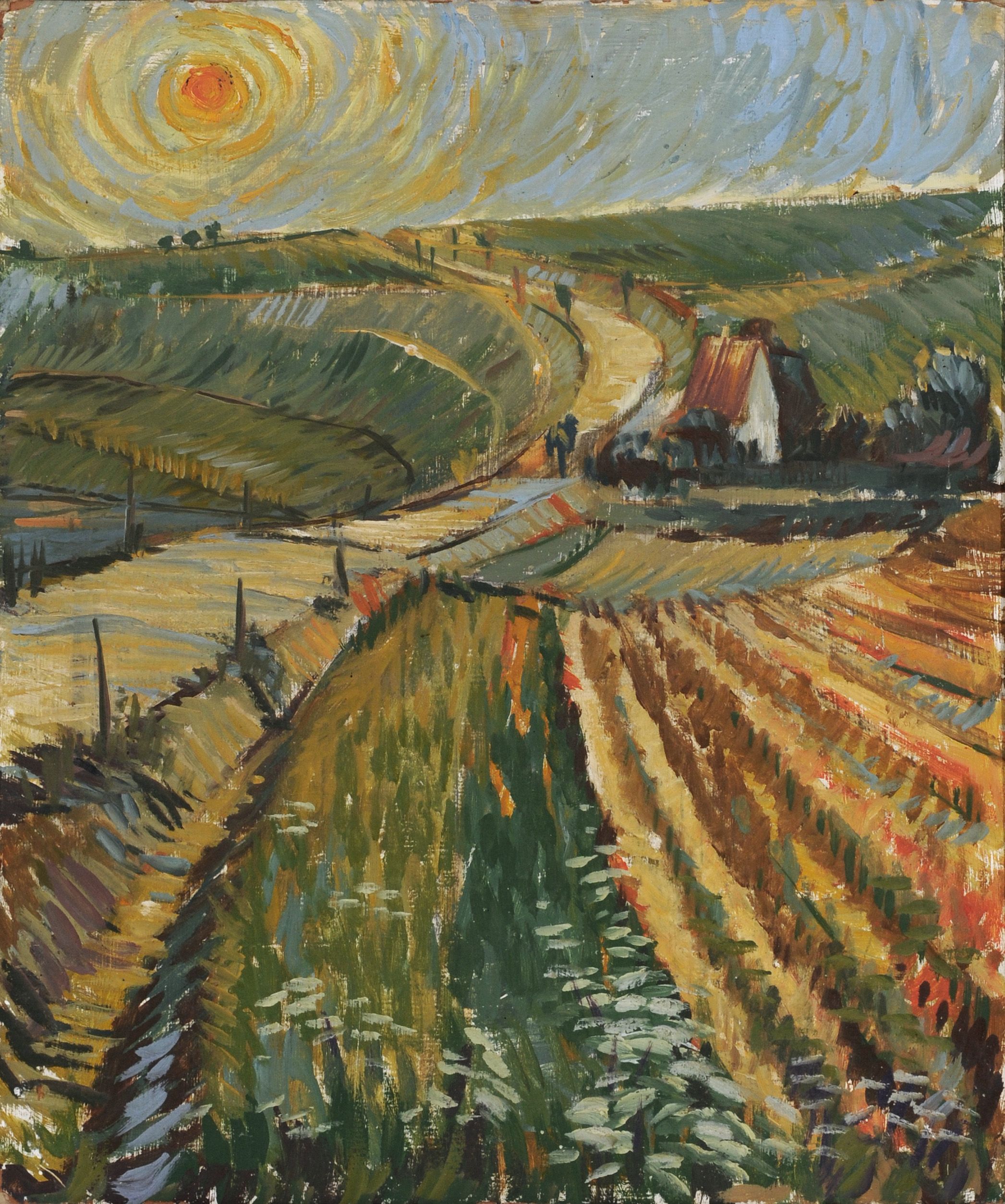 Öl auf Hartfaser. Verso im Kreis ligiert monogrammiert "KW", in schwarzem Faserstift betitelt sowie ortsbezeichnet und ausführlich datiert "Altenburg, Sommer 1964". In grünem Faserstift mit Maßangabe versehen. In einer schmalen schwarzen Künstlerleiste gerahmt.