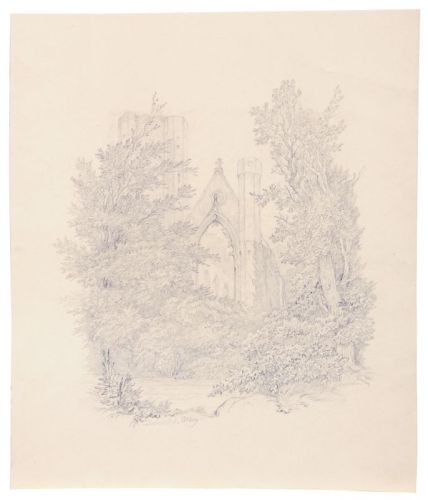 Bleistiftzeichnung auf kräftigem Papier. Unsigniert. In Blei wohl nach Stichvorlage eigenhandschriftlich abweichend betitelt "Dunkled Abbey" u.li. Verso in Blei von fremder Hand bezeichnet.