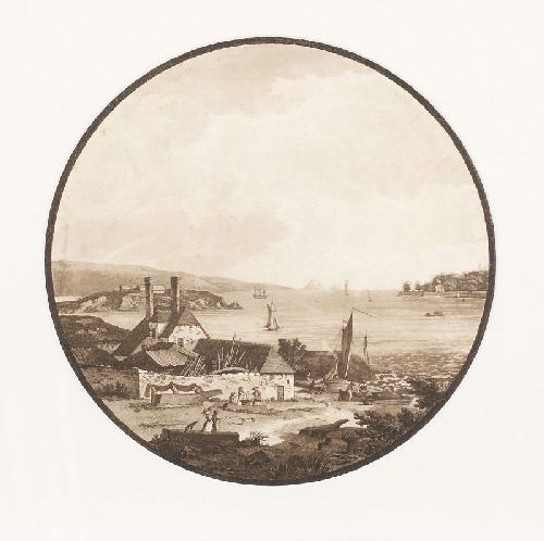 174 Unbekannter englischer (?) Künstler "Landschaft mit See und Castle" / "Meereslandschaft". 19. Jh.