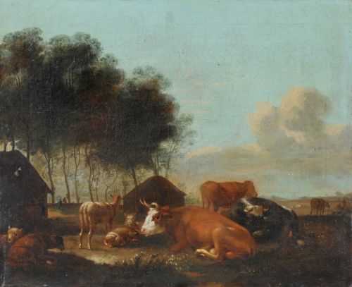 018 Johann Friedrich Weitsch (Umkreis), Rastende Kühe und Schafe. Wohl um 1765.
