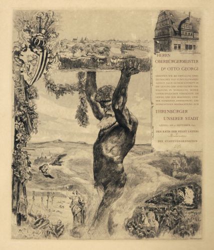 194 Max Klinger "Ehrenbürgerbrief für Oberbürgermeister Dr. Otto Georgi" 1899.