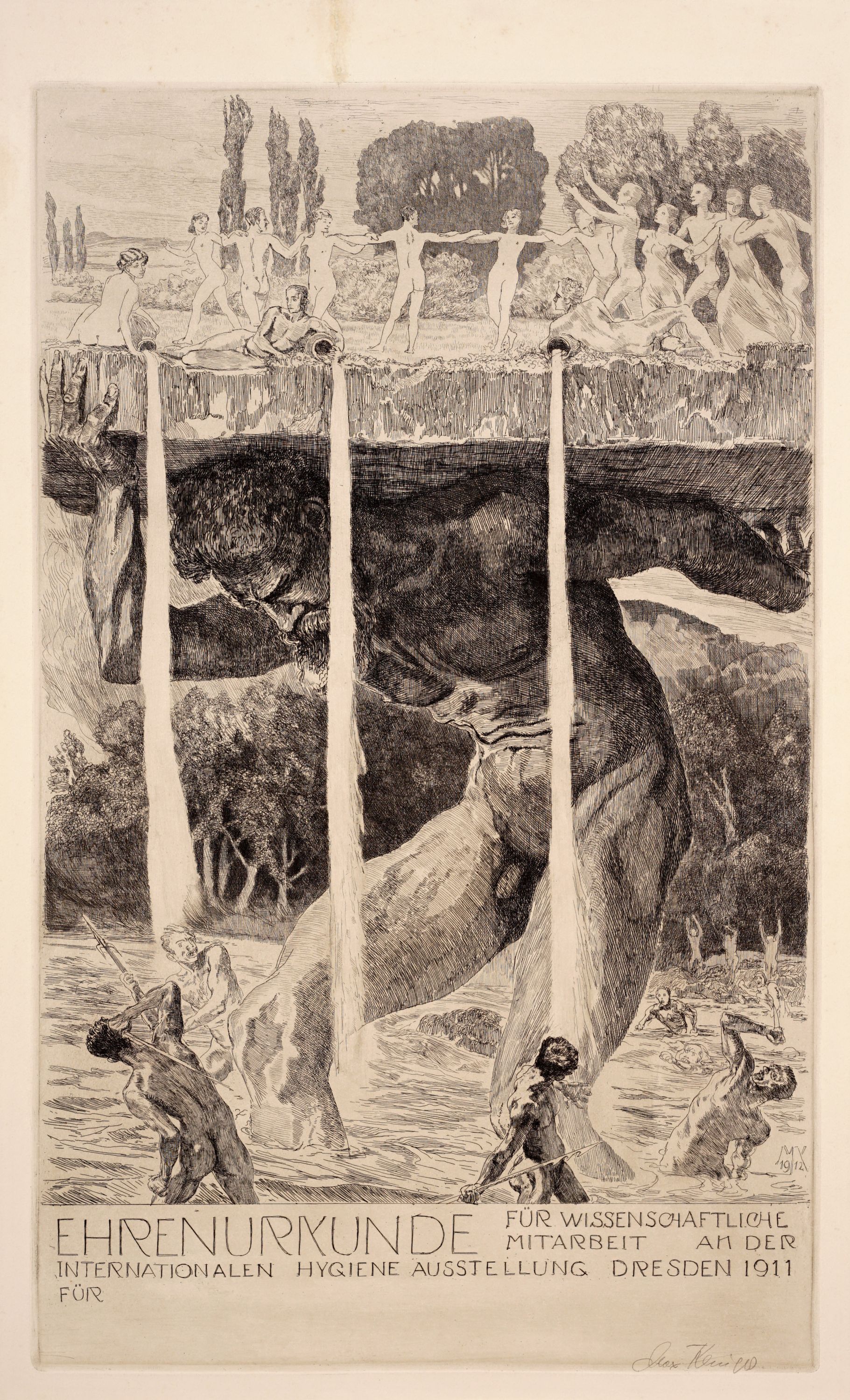 196   Max Klinger "Ehrenurkunde für wissenschaftliche Mitarbeit an der Internationalen Hygiene Ausstellung Dresden 1911 Für ____". 1912.
