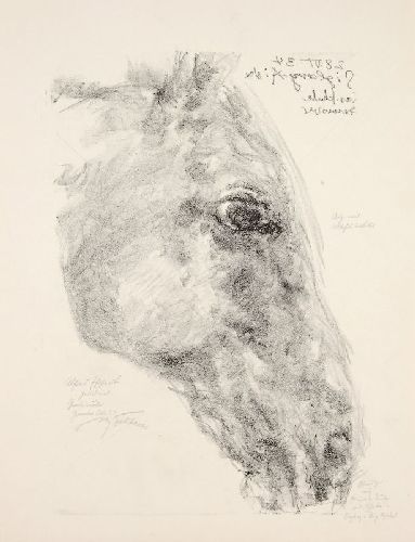 Lithographie. Im Stein o.re. spiegelverkehrt bezeichnet und datiert, mit Widmung, sowie weiteren Bleistiftannotationen des Künstlers und Signatur versehen. Verso Sammlungsstempel. Blatt leicht angeschmutzt mit wenigen Knickspuren.