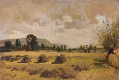 Öl auf Papier, auf Malpappe maroufliert. Signiert "W. Zimmer" und datiert u.li. In Bleistift bezeichnet "Zimmer" u.re." Verso in Tinte nochmals signiert "Wilh. Zimmer", betitelt und nummeriert "No. 31" o.li. Mittig in blauem Farbstift bezeichnet "HZ A 49". Umlaufend mit schwarzem Papierband beklebt.
