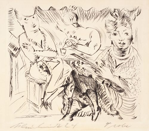 Kaltnadelradierung auf gelblichem "JW Zanders"-Bütten. In der Platte o.Mi. monogrammiert "P.Kl." und datiert. In Blei unterhalb der Darstellung signiert "Kleinschmidt", datiert und bezeichnet "Probe". Am o. Rand auf Untersatzkarton montiert. Verso mit dem Sammlerstempel von Siegbert Marzynski versehen.