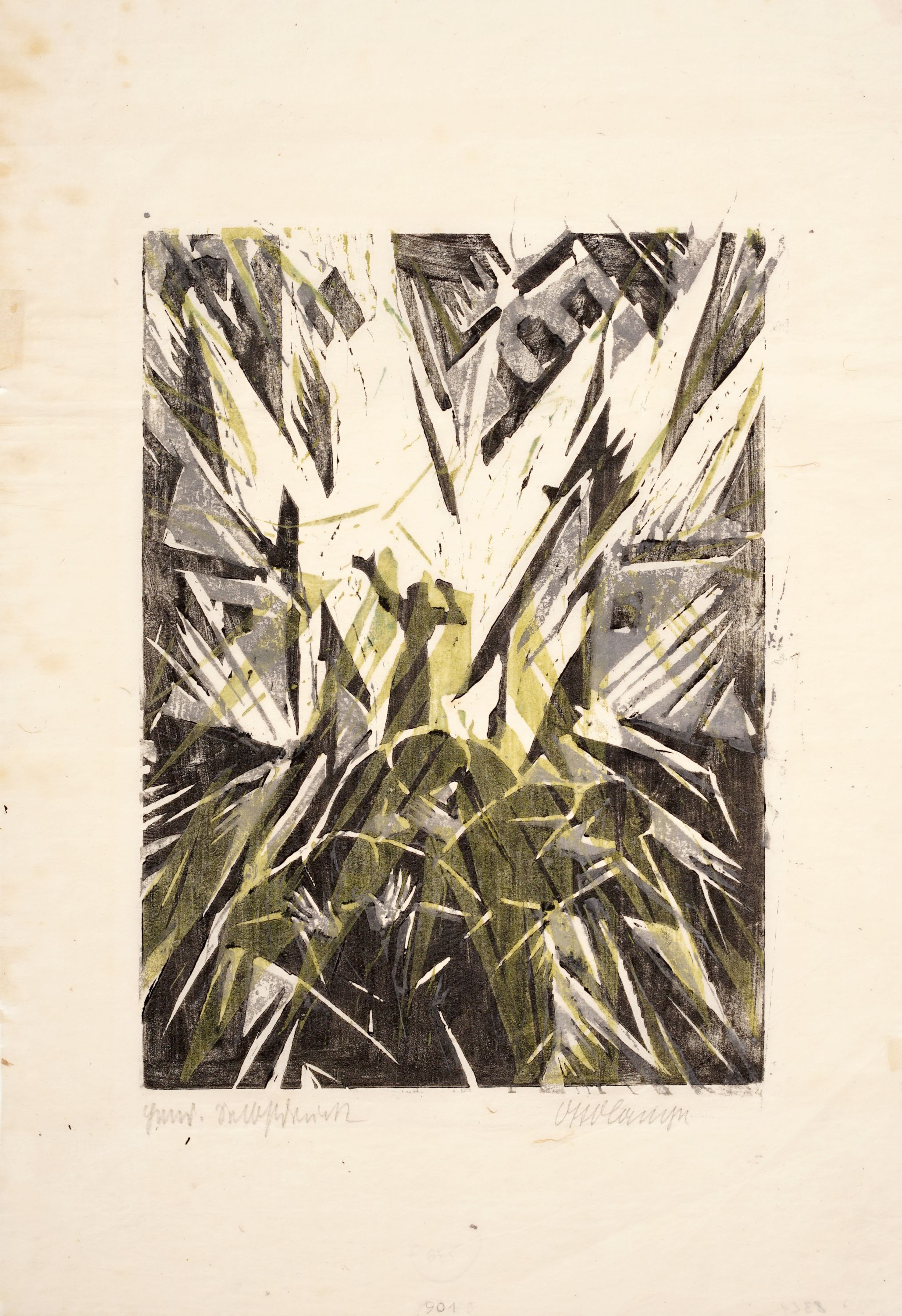 Farbholzschnitt auf hauchdünnem Japan. Im Passepartout. Unterhalb der Darstellung in Blei signiert "Otto Lange" und u.li. bezeichnet "Hand Selbstdruck". Im Passepartout.