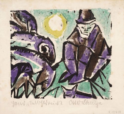 Farbholzschnitt auf hauchdünnem Japan. Unterhalb der Darstellung in Blei signiert "Otto Lange" u.re., bezeichnet "Hand Selbstdruck" u.li. Auf Untersatzkarton im Passepartout montiert.