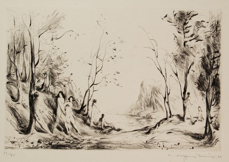 216 Wolfgang Breuer, Badende am Waldesrand. 1924.
