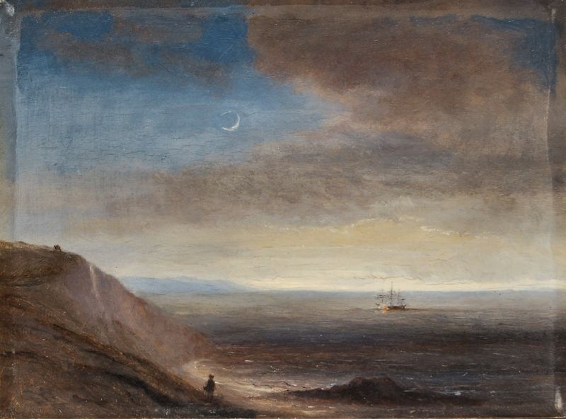 022   Thomas Fearnley (zugeschr.), Steilküste im Mondschein. Um 1835.