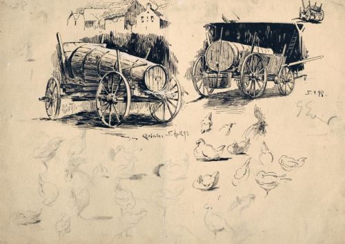 Bleistiftzeichnungen und Federzeichnung in Tusche. Drei Blätter in Blei signiert "G. Erler" bzw. "Erler", teilweise datiert. Alle Exemplare auf Untersatzkarton montiert. Teilweise verso mit Skizzen.
