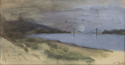 231 Oswald Galle "Flußlandschaft mit Brücke". Ohne Jahr.