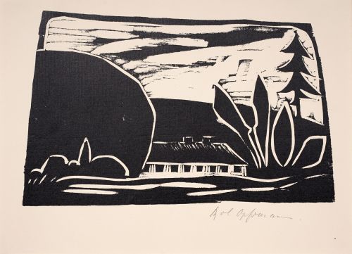 Holzschnitt auf Maschinenbütten. Unter der Darstellung in Blei signiert "Karl Opfermann". Aus "Das neue Hamburg", 1923, eines von 50 handsignierten Exemplaren. Gedruckt bei der "Druckerei-Gesellschaft Hartung & Co".