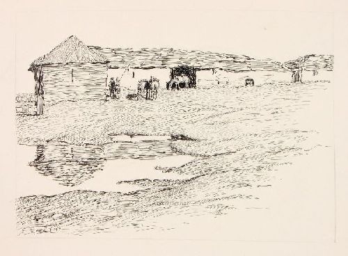 279 Enno Alexander Jenner, Von Gardereitern besetztes Gehöft. 1916.