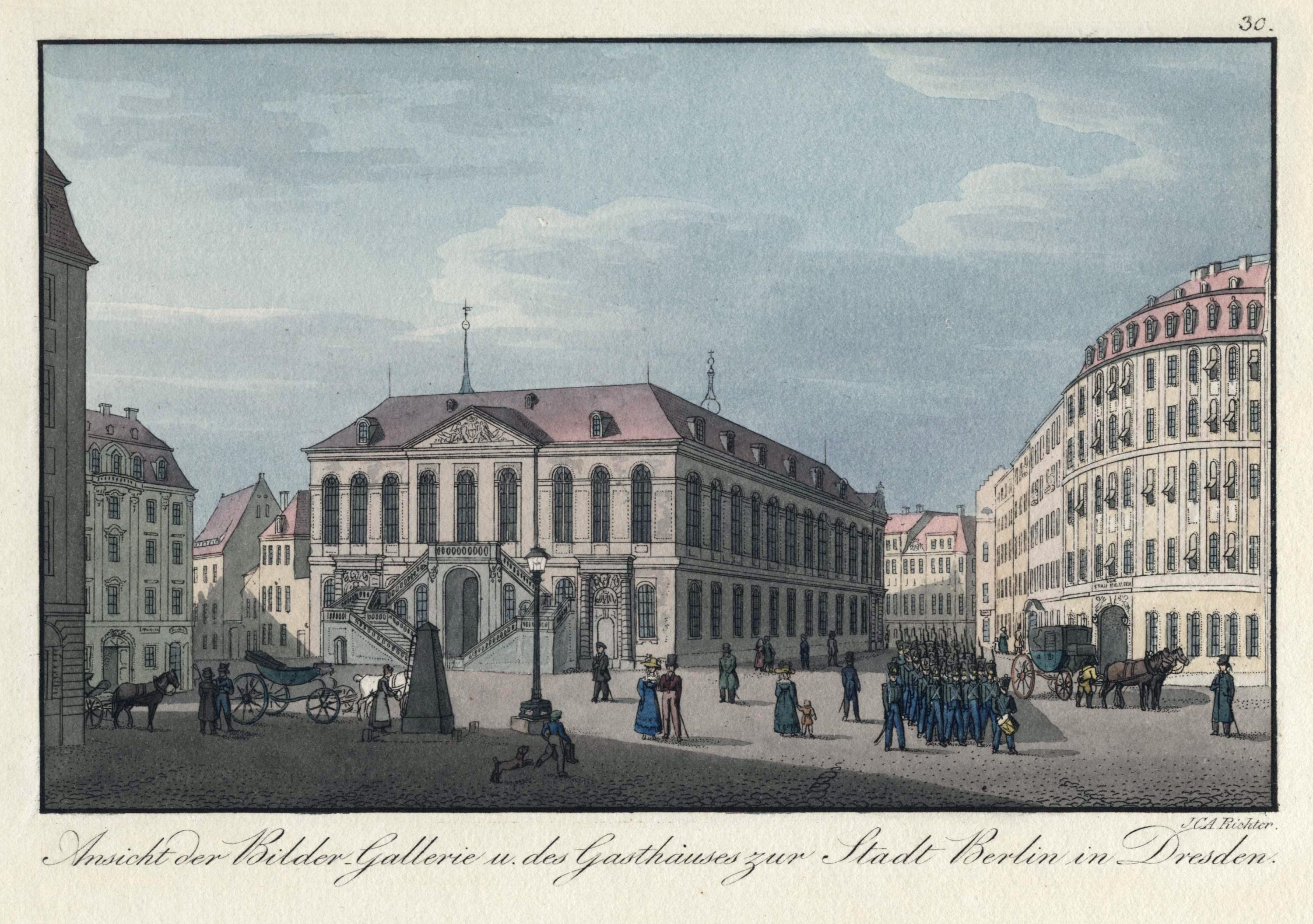 293 Johann Carl August Richter "Ansicht der Bilder-Gallerie u. des Gasthauses zur Stadt Berlin in Dresden". Um 1830.